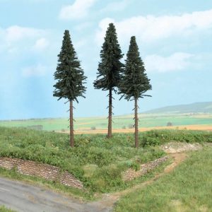 Heki High Trunk Fire Trees 17cm x 3. Suitable for a wide variety of scales. Full range of Heki scenics available to order.