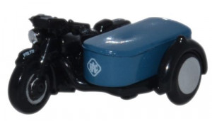 Motorcycle and sidecar in AA livery. This dual combination was a popular form of transport from the 1930s right through to the 1950s. Used by commercial organisations as well as private bikers, the Automobile Association was a prime user, when the bike and sidecar were ridden by the AA patrolmen in their jodhpur shaped trousers and high brown leather boots. AA members whose front radiators sported the AA badge, got a respectful salute from the patrolmen in those days too, as you drove by. The familiar AA Golden Yellow and Black livery is faithfully reproduced on this minute new model, registered HGV 228, including the AA insignia of the period. The bike is also highly detailed, especially the handlebars, which include brake levers and a rear view mirror. Note too, the black edge to the roof of the sidecar. For lovers of motorbikes and AA vehicles through the ages, this is something different to add to your fleet.